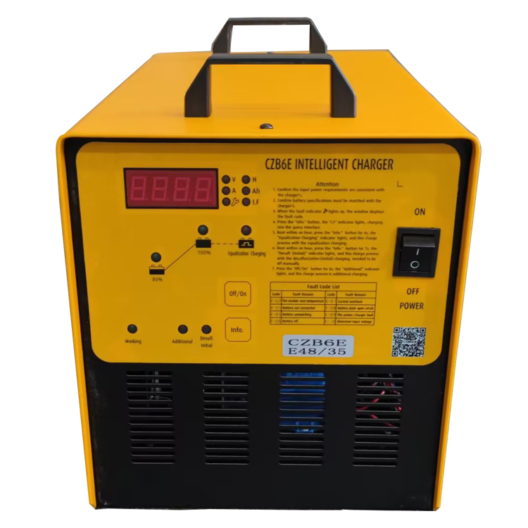 The CZB6E series charger is such an intelligent charger which is simple in structure, easy to use with various protection function. The charging controller automatically saves 70 times of history data, which makes it easy to query customers' charging habits; It is widely used for charging lead-acid batteries of electric pallet, forklift, carrier, lift, sightseeing bus and other vehicles.