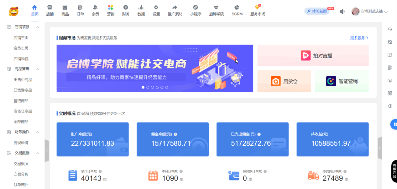現(xiàn)邏輯:系統(tǒng)后臺(tái)頂部菜單新增“啟博學(xué)院”入口,代理商客戶后臺(tái)不展示