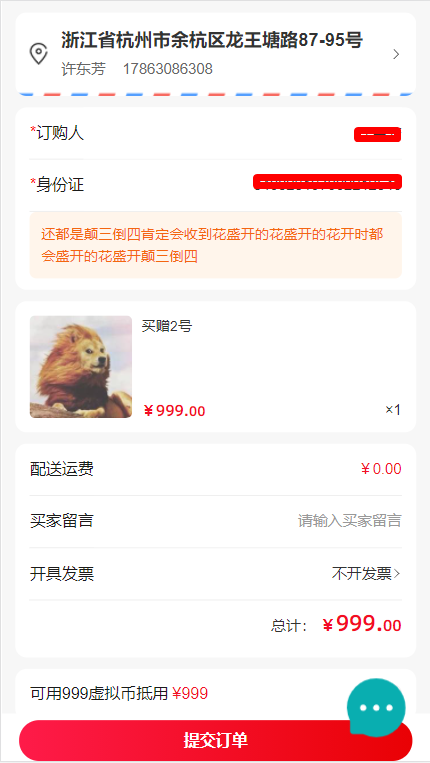 (2)下單填寫訂購(gòu)人姓名和身份證號(hào)碼