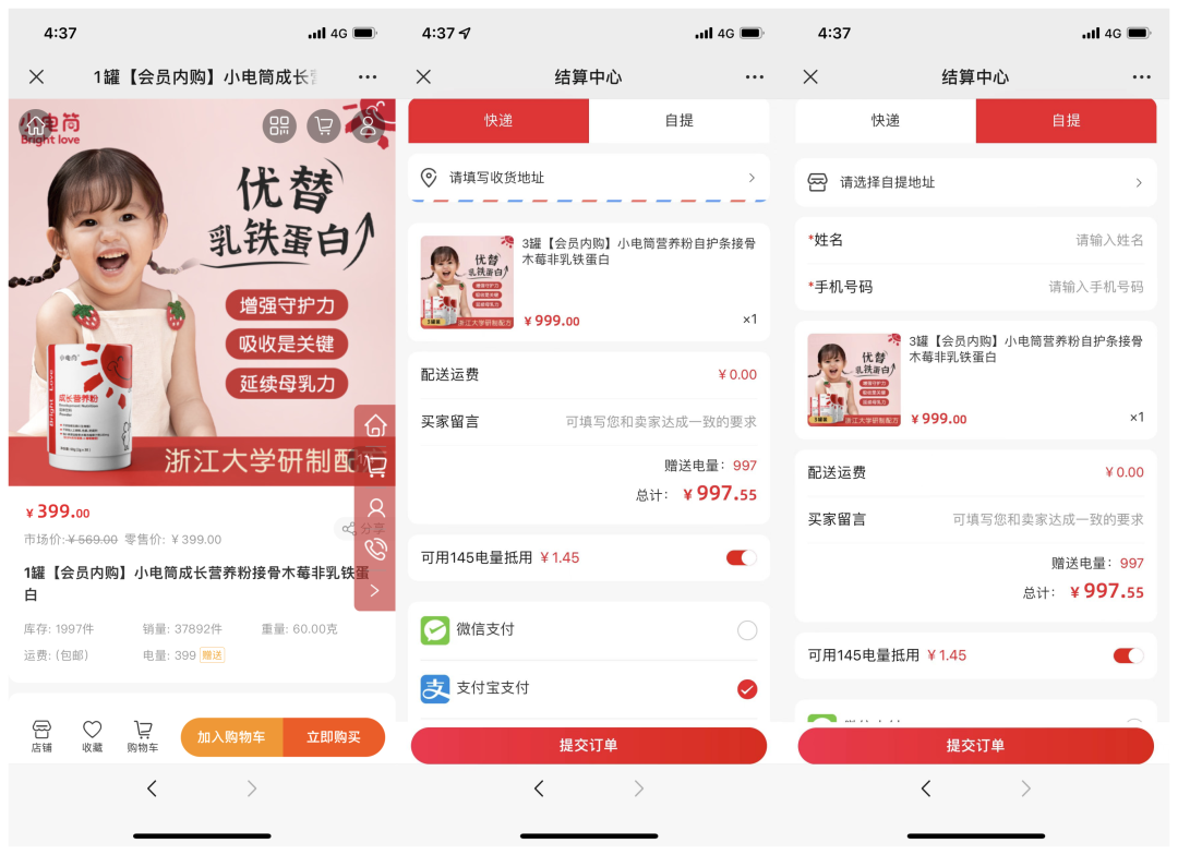 新人添加小電筒營養師小小之后,可以用折扣價購買營養粉,非常及時地用低價商品抓住新用戶,刺激新用戶首單下單;