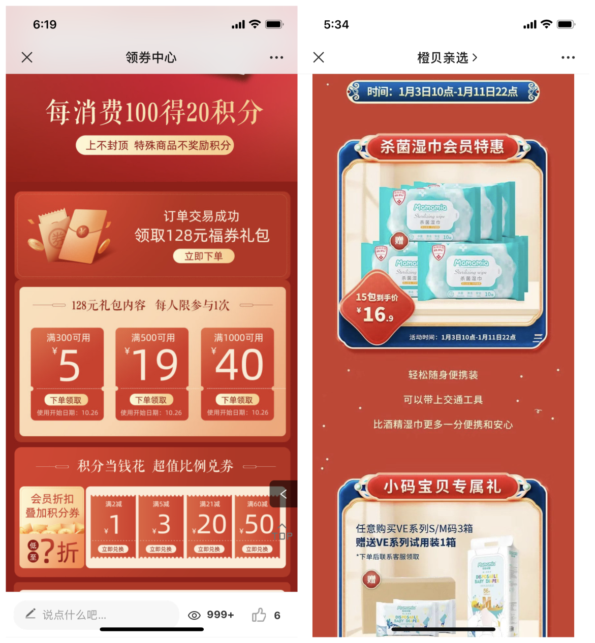 橙貝親選微商城針對首次下單的消費者,贈與“128元福券”(每人1次領取機會),在年貨節上線“秒殺”、“買贈”等營銷活動。