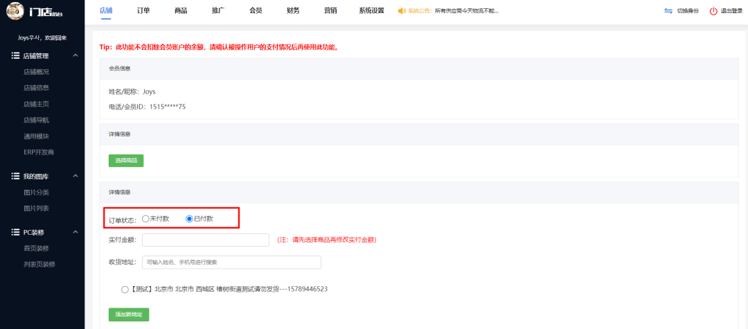 原邏輯:門店后臺創建訂單不可選擇配送方式