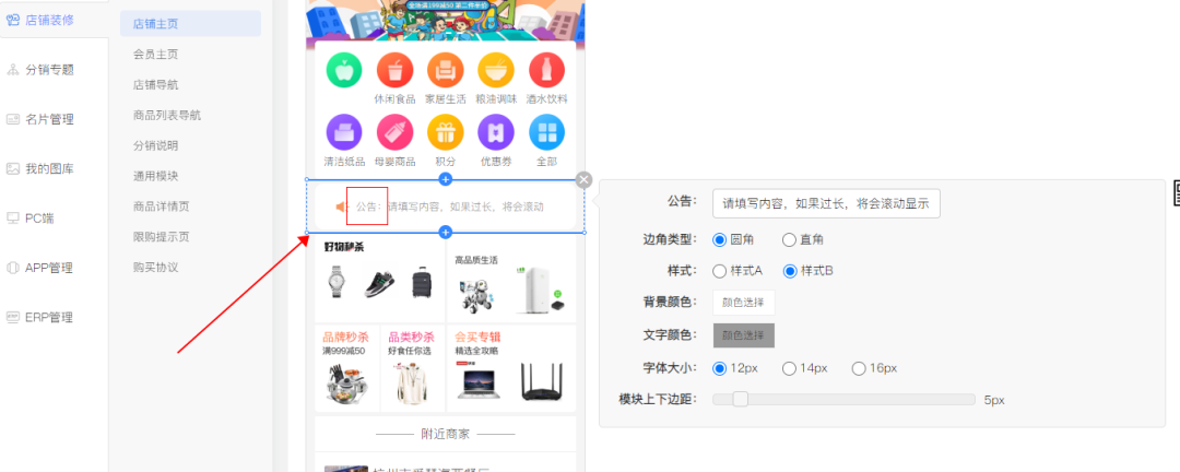 6.部分裝修模板新增小程序不支持文案【優化】;