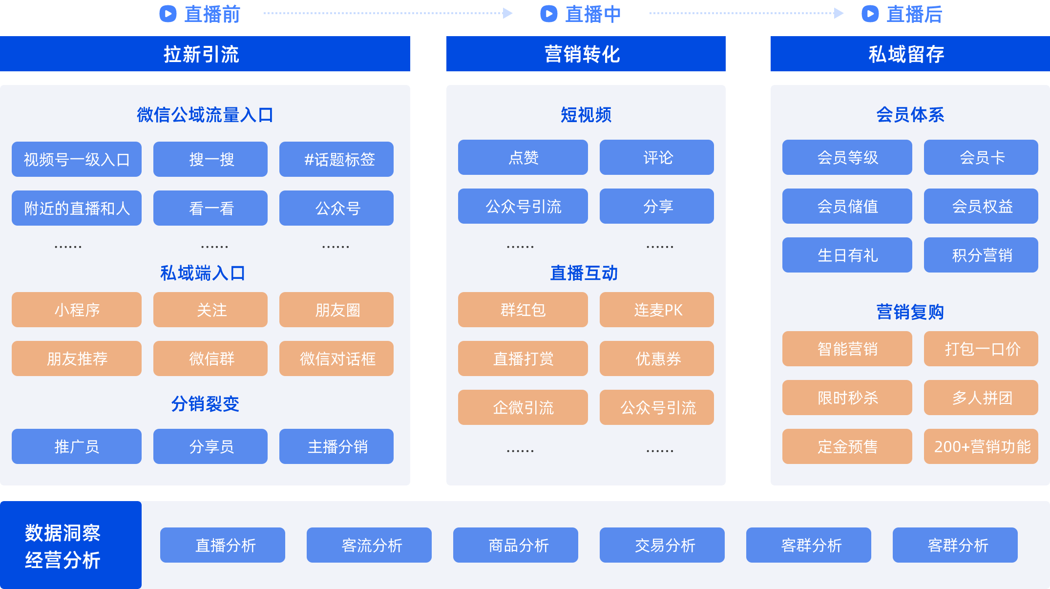 通過視頻號內(nèi)容運營,聚焦流量到企業(yè)公眾號及公眾號搭載的微商城小程序,定向引流客戶到微商城實現(xiàn)消費,完成轉(zhuǎn)化。